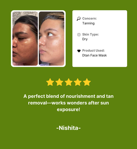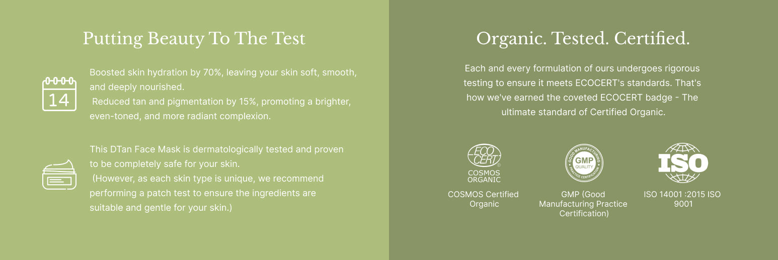 Cleanses and Soothes Skin: DTan Face Mask Helps cleanse and soothe the skin, making it smooth, radiant, and healthy.
