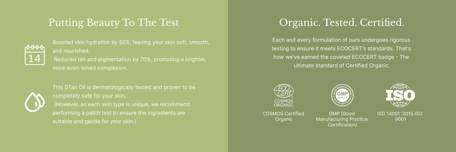 The "DTAN OIL" is a skincare product designed by “24cOrbelle” to address various skin issues related to discoloration, sun damage, dryness, and overall skin health. It is formulated with ingredients that aim to repair, moisturize, and brighten the skin.
