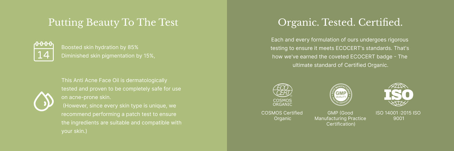 Acne Control: Anti Acne Face Oil helps control the spread of bacteria, reduces acne breakouts, and effectively treats spots.