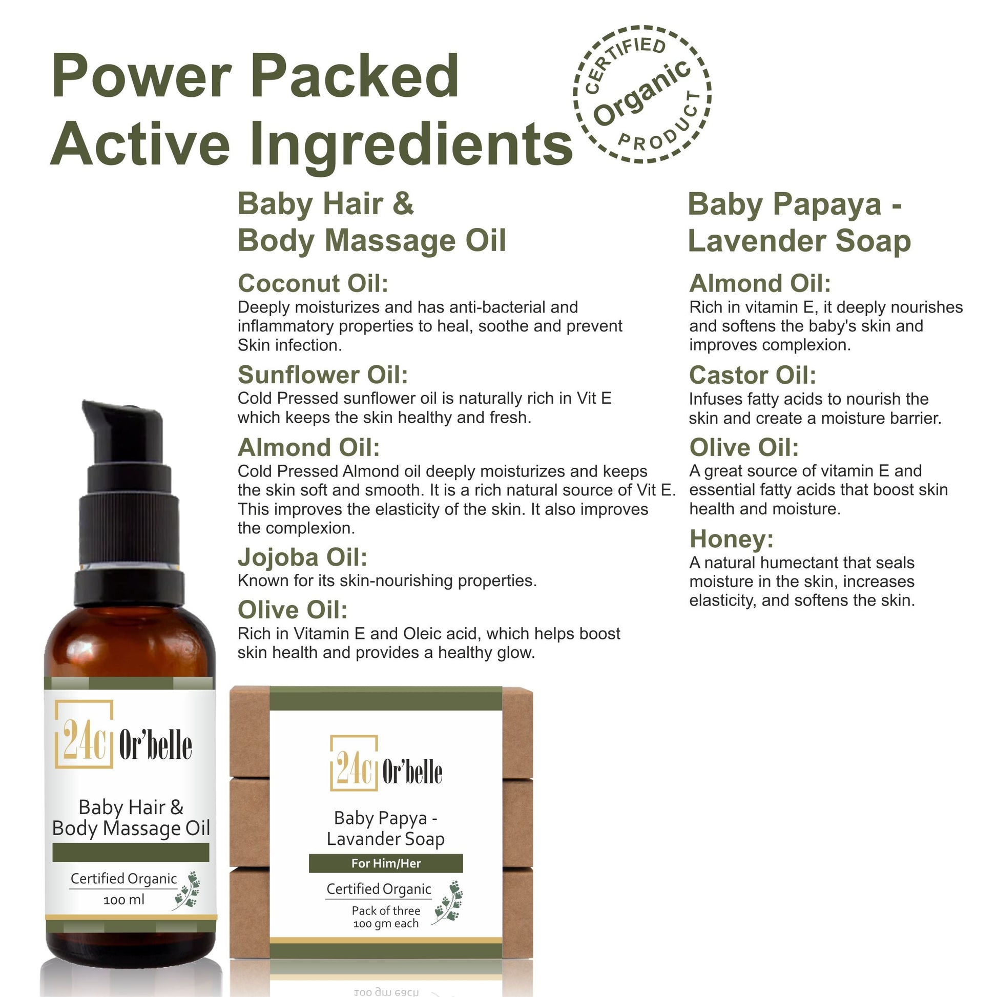The Infant Care Combo is a Premium Formulation by Experts for Optimal Effectiveness. Consisting of Baby Massage Oil and Cold-Pressed Soap with Lavender, this combo can be a great addition to your baby’s skincare routine. Lavender is known for its soothing and calming properties, making it a popular choice for baby products.