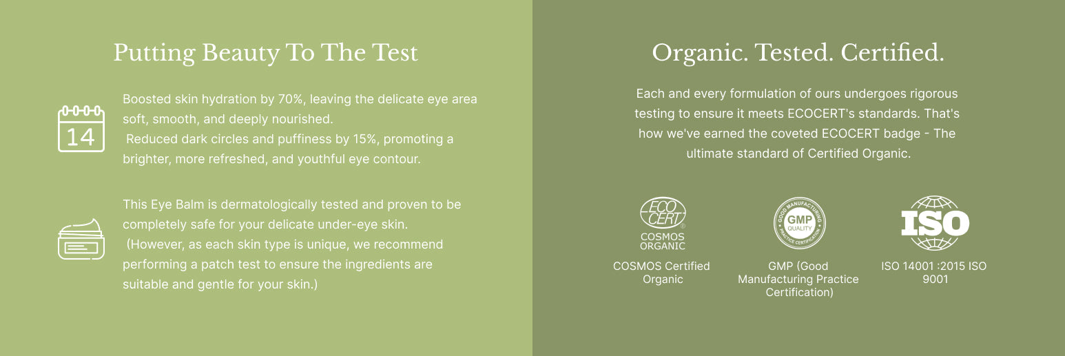 Hydration for 24 Hours: Eye Balm is designed to keep the skin around the eyes hydrated for a full 24 hours. Adequate hydration is crucial for maintaining healthy and youthful-looking skin.