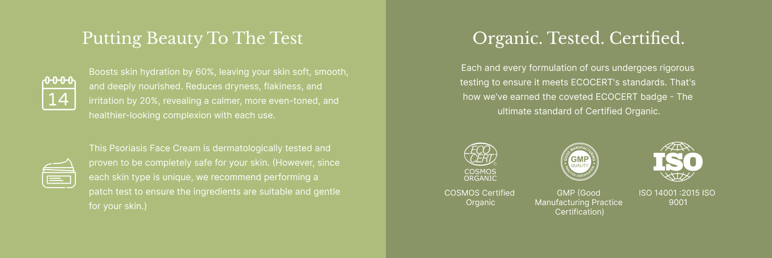 100% chemical and preservative-free: We take pride in offering a Psoriasis Face Cream that is entirely free from harmful chemicals and preservatives, prioritising the well-being of your skin.