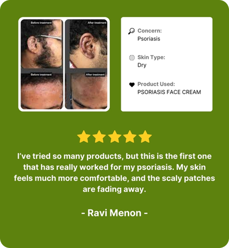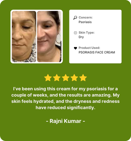 Free from steroids: Our Psoriasis Face Cream is steroid-free, ensuring a gentle and natural approach to managing psoriasis symptoms.