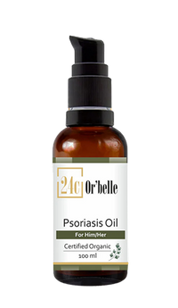 24C OR’BELLE’s Psoriasis Oil contains a blend of natural ingredients that work together to alleviate psoriasis symptoms. It helps in managing the condition by reducing itchiness, burning, and dryness associated with psoriasis.