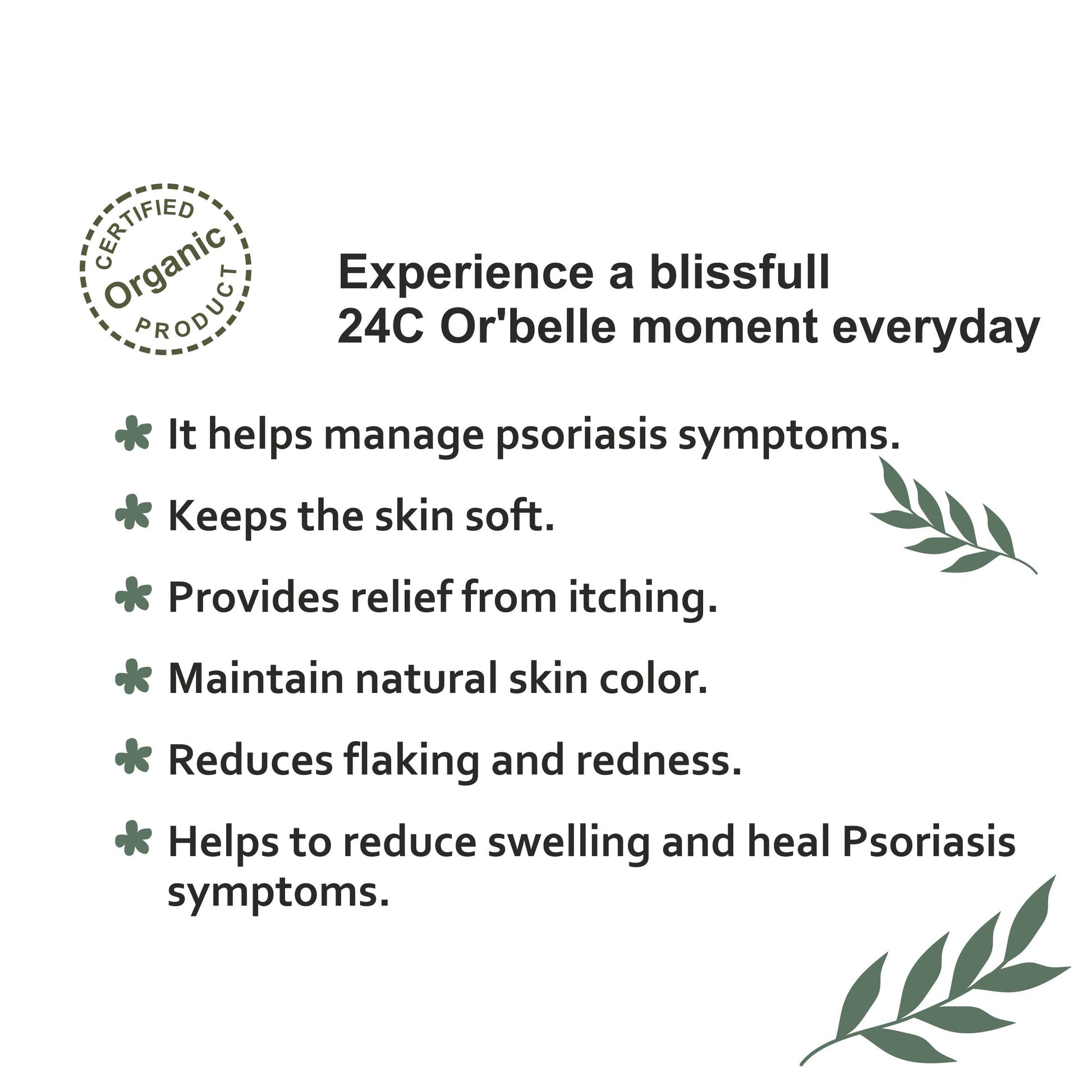 24cORBELLE Psoriasis Oil offers a range of benefits for individuals dealing with psoriasis, from symptom management to skin softening and relief from discomfort. It is formulated with natural ingredients that work synergistically to address various aspects of this autoimmune skin condition.
