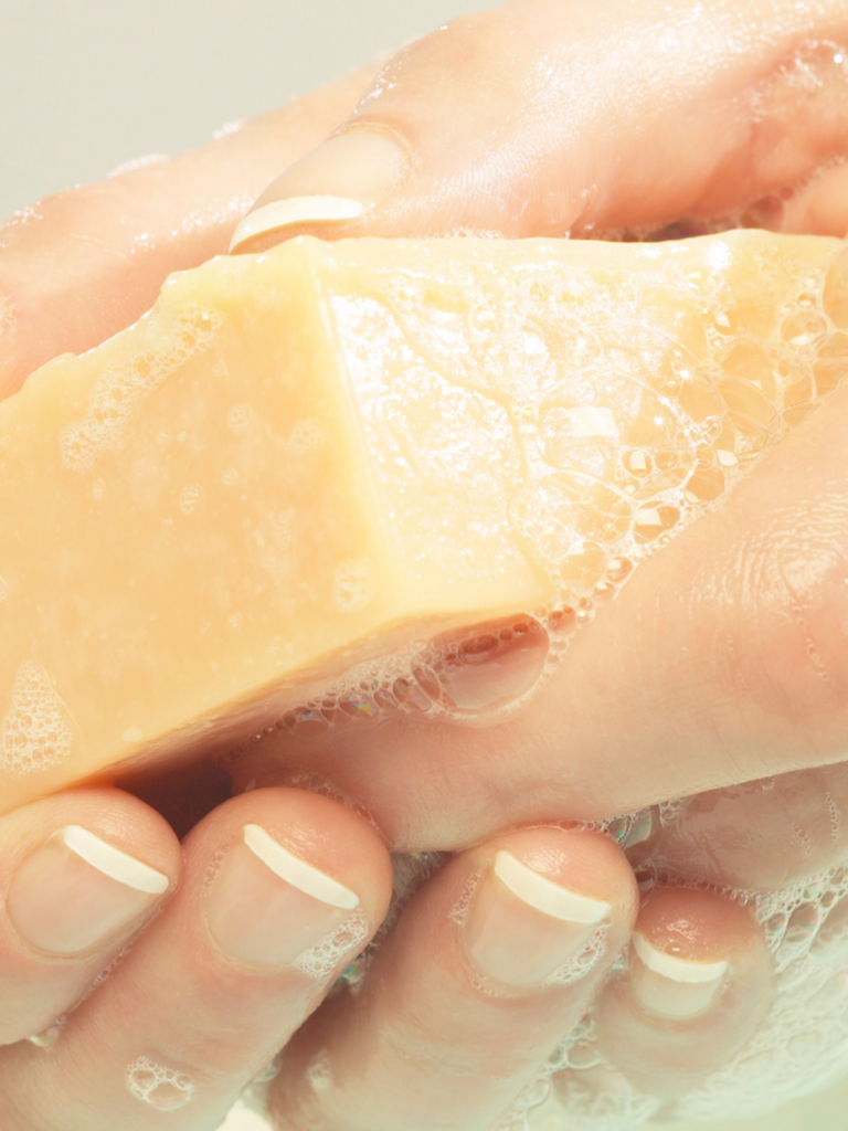 Use the soap again in the evening to cleanse away the day’s impurities.